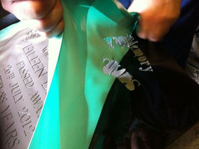 The surface is blasted which etches away the exposed areas of granite.The rest is protected by the vinyl Stencil tape6.Finishing stencil sandblasting